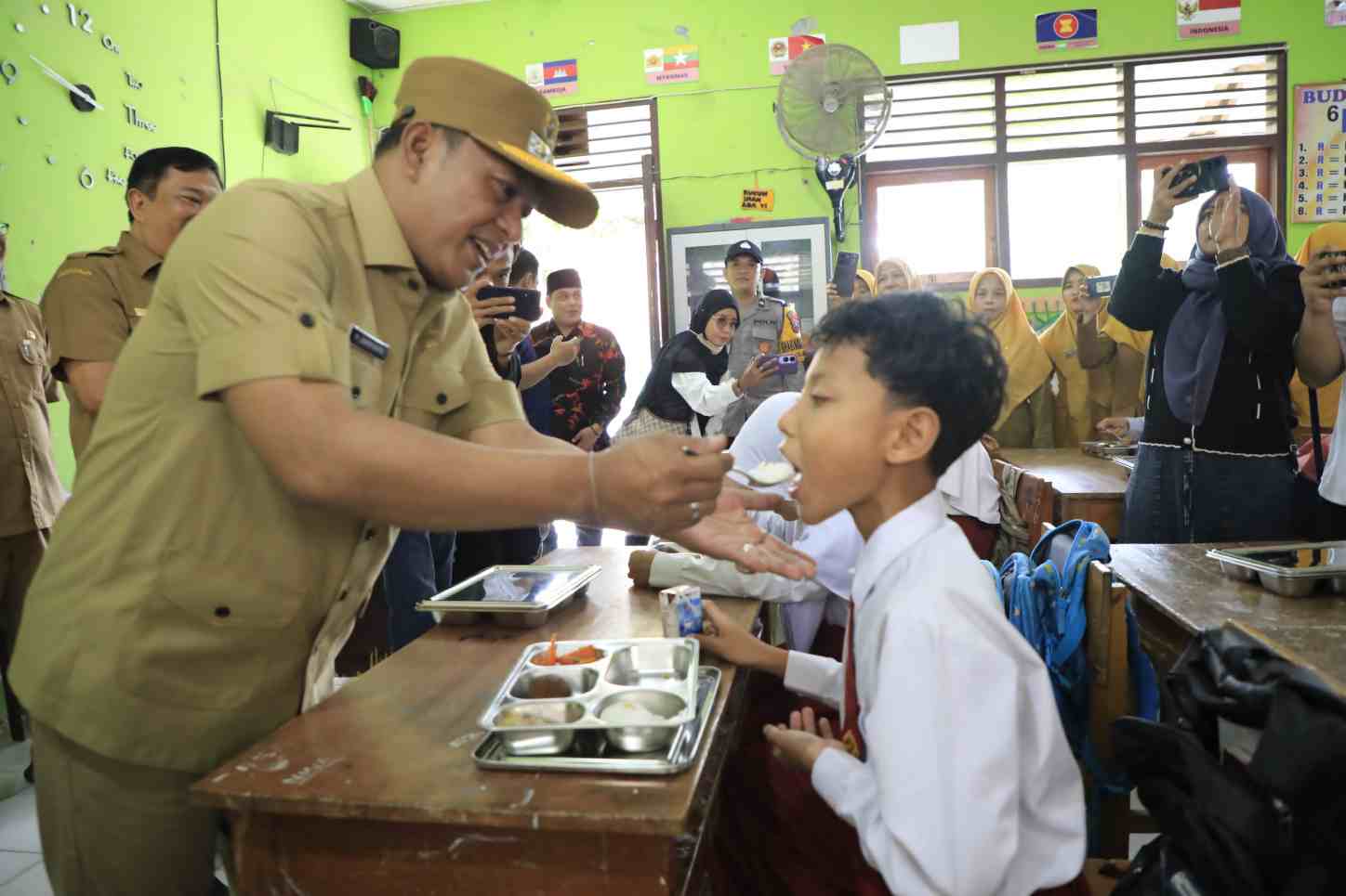 Pamekasan, Kroscek.id-Wakil Bupati Pamekasan, Madura, Jawa Timur, H. Sukriyanto mengunjungi realisasi program Makan Bergizi Gratis (MBG) di SDN Laden 1 Pamekasan, Senin (14/4/2025).